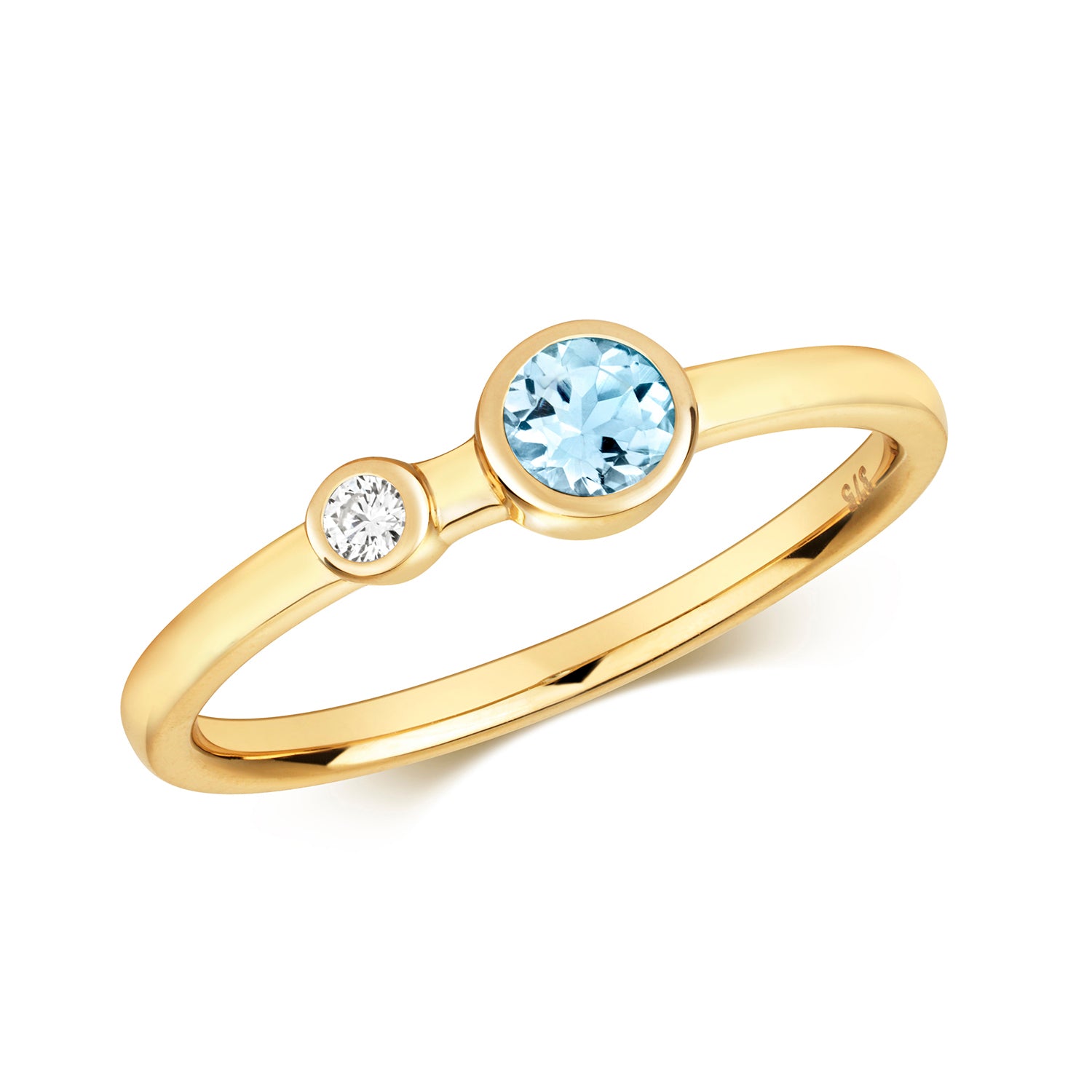 9ct Yellow Gold 0.03 Diamond & 0.22ct Aquamarine Ring